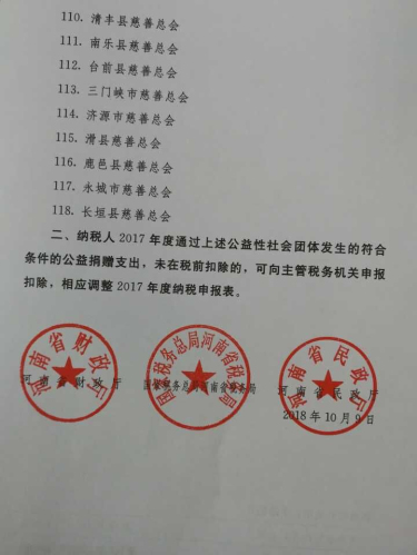 2017年度公益性社会团体捐赠税前扣除资格名单