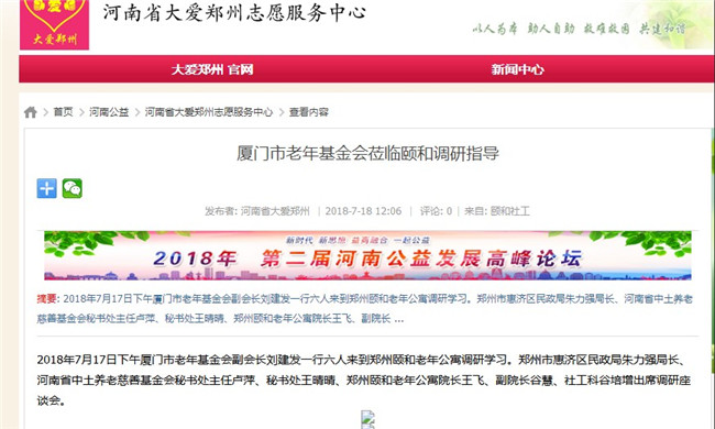 厦门市老年基金会莅临颐和调研指导 - 河南省大爱郑州志愿服务中心-河南公益-豫民网 - Powered by Discuz!